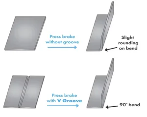 يمكن القول إن ماكينة V Grooving تمهد الطريق لماكينة Bending، لتقوم الأخيرة بعملها بشكل أدق وأجمل. إليك كيف: